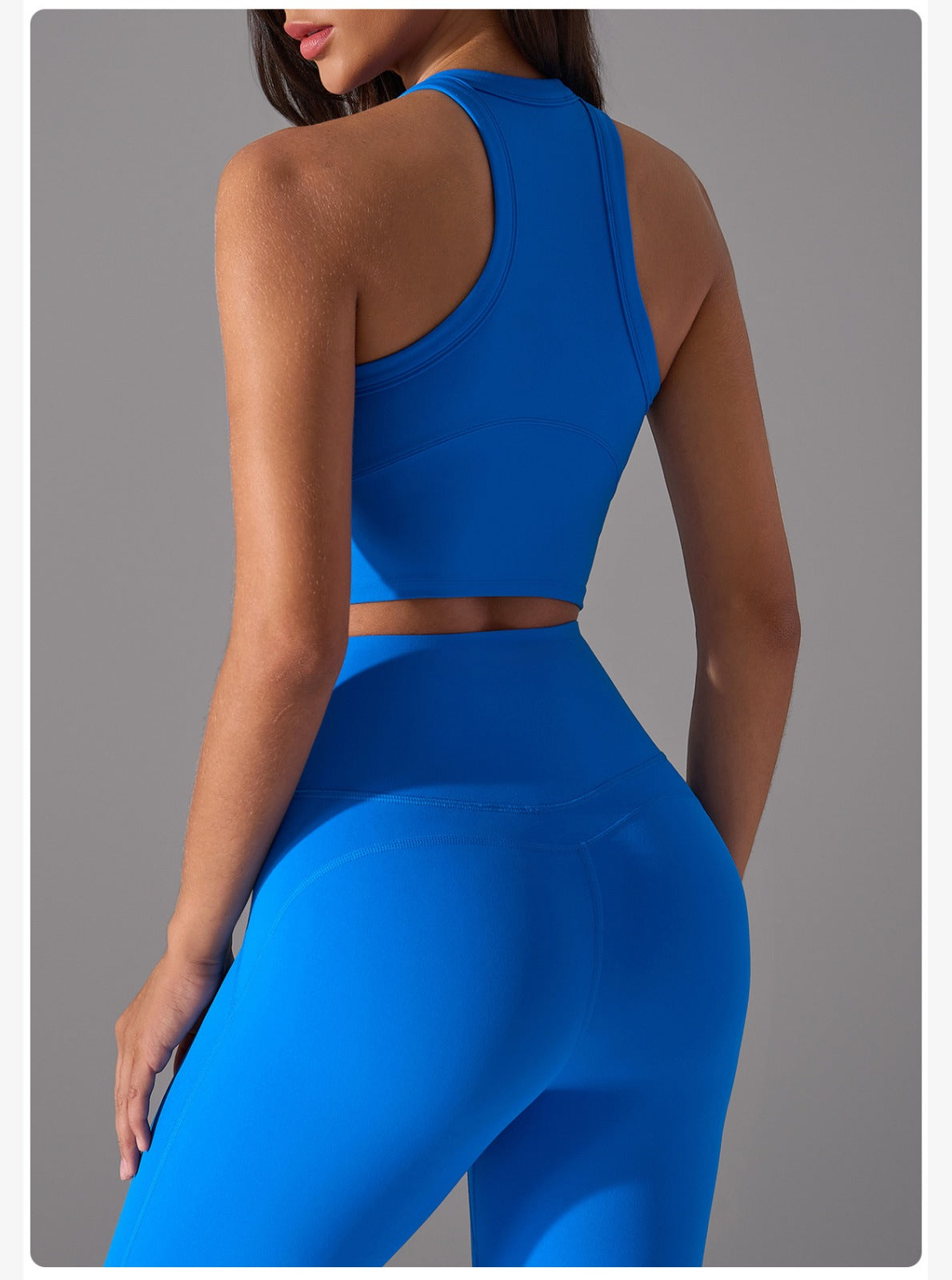 The ElectricWave Sports Bra in striking electric blue blends high-performance support with bold street style. This crop top offers medium support and a buttery-soft feel that hugs your body like a second skin. Designed to stand out, it features a built-in bra top with fixed pads for comfort, a sleek racerback design and a high-fashion look that transitions seamlessly from warm-up to wind-down—perfectly paired with the ElectricWave Leggings for a complete and chic activewear set.
